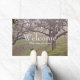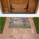 北カリフォルニアの薄ら寒い冬の朝の木の下でぶら下がったな2頭のシカはこのドア・マットのためのテーマです。 入る前にあなたのひづめを拭いて下さい。