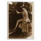 このヴィンテージのポートレートは彼女の車の踏板の1つの足を搭載する玉石の通りに立っているシカゴのsuffragetteを示します。 行進の用品類はオープン前部スカートの下でハイヒールのブーツ、ズボン、短いジャケットおよび広い溢れた帽子から成っています。 Bainのニュースによる元の20世紀な(1916年の)写真から。 複製権所有©の2012年のpadreの芸術