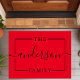 シグネチャースクパーソナライズされたリプト赤いファミリ名 ドアマット