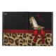 iPad Air 2ケーススタイリッシュ、スタンドと黒の斑点のある茶色と黒の色のジャガーの毛皮のパターンのグラフィックが組み込まれ、ケースの上に黒が無地の付いている。真ん中を横切る赤いサテンの走見えるリボンのグラフィックは、右側にかわいらし赤い弓を持つ。ファッショナブルなジャガーのプリントスティレットのペアは飾、ケースの前面のトップにハイヒール。赤い文字をパーソナライズ優れたギフトアイディア。