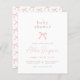 この祝とピかわいらしンク弓テーマの赤ちゃんシャワー予算の招待と喜びのあなたの近日来のバンドル。小文字エレガントのセリフタイポグラフィ、赤面ピンクのスクリプトレタリング、水色の弓を搭載。テーマシンプル付きの赤ちゃんシャワーに理想的なお祝いとミニマルなデザインガーリー、この招待は思い出に残るイベントのトーンを設定する。ザッカスタマイズズルの直観的なデザインツールを使用して詳細を送信しスタイリッシュて、彼らが愛する心温まる招待状!Zazzleの予算選択の一部として、このシートは標準的なカー来ドサイズではない。このデザインを標準カードで取得するには、コレクション内で見つけるか、Zazzle Make Machineを使用して希望の製品に転送する。このページにリンクされたコレクションを表示するか、詳細については当社のストアを参照デザイン!