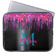 シックなホットピンクブルーブラックグリッタードリップモノグラム ラップトップスリーブ