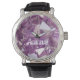 シックなラフアメジストパーソナライズされたとマウヴの名前 腕時計