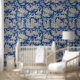 シックなヴィンテージダークブルーのトワールde jouy printed 壁紙