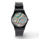 シックな暗いティール(緑がかった色)ブルー赤面ピンク金ゴールド大理石パターン 腕時計