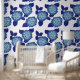 スタイルスタイリッシュブルーとホワイトフローラアジサイの皮をむき貼りパターン(の模様が)ある壁紙