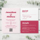 シックはっきりしたレトロホットピンクタイポグラフィ結婚ズ ベラム紙招待状