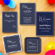 ネイビエレガントーブルーとホワイトの誕生日の招待はバースデーに最適でモダンすが、ネイビシンプルーブルーの背景に白い書道を備えたエレガントデザイン。