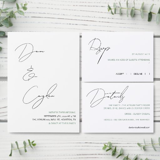 手書きのスタイルフォントでカップルのイニシャルとクリーンで風通しの良いデザイン。