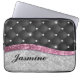シックガーリーシルバーフェイクグリッターブラックピンクモノグラム ラップトップスリーブ