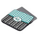 モノグラムパーソナライズされたと名前シックなティール(緑がかった色)と黒いシェブロンとストライプのパターンを白い背景