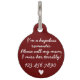 シックなピンクのグリッターキリンプリントペットIDラベルで声明を作成し、あなたの毛皮の仲間を輝かせなさい!ラベルの正面には可愛い白い文字でペットの名前を飾り、ピンクのグリッターキリンのプリントで美しく補完かわいらしされている。それを裏返すと、カスタマイズ可能な引用文「私は絶望的なロマンチックだ。私の母を呼んで欲しい、私は彼女恋しく思を恐ろしく!」愛らしい白いフォントで。また、独自のメッセージと電話番号でラベルをパーソナライズすることもできます。耐久性のために作られたこのラベルは可愛くておもしろい犬に最適なアクセサリー!