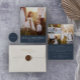 シックモダンなネイビーブルーの円形差出人住所のシールはホリデーカーや招待用のエンベロスタイリッシュップに最適である。このシンプルデザインは、素朴なダークネイビーブルーとホワイトのクラシック洗練された書道を特徴としている。