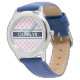 シック名門私立校風のなピンクのネイビーギンガムパターンモノグラム 腕時計