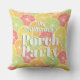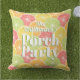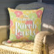 アウトドアスタイリッシュファブリックピローは、オレンジ、レモン、ライム、グレープフルーツのスライスの背景にあなたの家族の名前と"ポーチパーティー"の言葉を特徴とする。夏の装飾のおもしろい。私たちの店のマッチングアイテム。