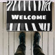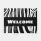 はっきりしたな文字"歓迎"が付いているシマウマのプリント。 アルマのかたまりによる元の芸術との白黒のファンキーな玄関マット。 レトロのスタイル項目が認められる家で素晴らしい。