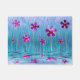赤い中心を持つキュートな様式化された紫の花のデジタ輝くルスケッチ。波打つ水のプールの横の背の高い草の中から、彼らはいぶかしげに君を見澄んつめている。