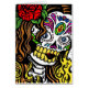 砂糖かわいらしスカルの女の子は彼女の長い茶色の髪に赤い花を持つ。おもしろいの色とパターン