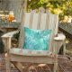 シュロの葉プリント、ターコイズ、ティール(緑がかった色)およびライト水 クッション