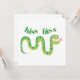 Tシャツ、 マグカップ、バッグ、カード、ピロー、マグネットなどに、赤いフォークのような舌と緑色のテキストがプリントされた、濃い緑と薄い緑の蛇のデザイン。子供から大人まで楽しめるアイテムです。