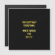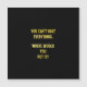 黒い背景の黄色の文字はユーモラスに、すべてを持つことの実用性を疑問に思う。それは読者に宇宙と所持の限界を考慮するように促す。