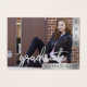 ホッスタイリッシュトオーバーレイと銀色のメタリックなクロームとブラックのパレッフェイクトでアクセントを持つ水平方向の卒業テンプレート。デザインにはシックな手書きブラシスクリプト「卒業」タイポグラフィのオーバーレイと写真、卒業年の名前と卒業年が含まれている。#bound #classof2019