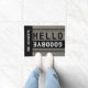 こんにちはパーソナライズされた、銀色のドアマットを背景にグリッター。