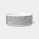 白いセラミックフェイクボウルに直接プリントされた猫や犬の名前とインスパイアもモダン、美しいニュートラルなミディアムグレー印刷されたグリッターパターン。