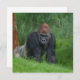 このエキサイティングなイメージでは、強力なシルバーバックゴリラが緑豊かな草の中に立ち、その視線は背後に孤独な木を持って前方に固定されている。