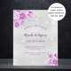 銀の輝フェイクきとピンクと紫フェイクの花を持つ銀色の背景。名前とパーティー・詳細のパーソナライズおよび追加1枚= 1枚の招待状を印刷したエッジからエッジ