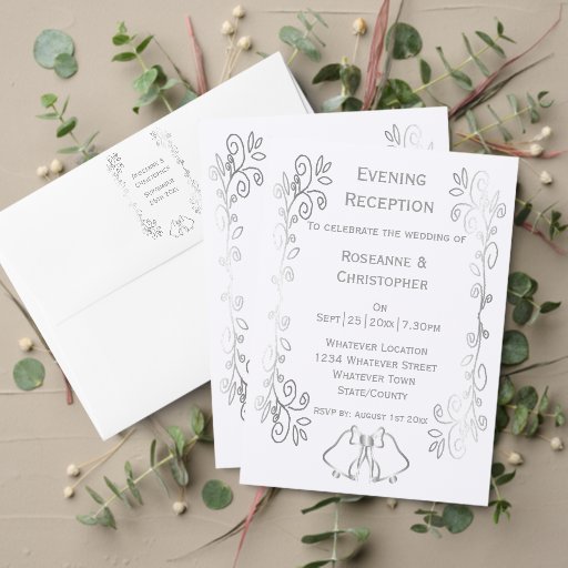 シルバーベルズスクロールワーク結婚デザイン 招待状