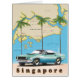 シンガポール図解入りの、写真付きのの地図とクラシックスーパーカーの美しいヴィンテージスタイルポスター。