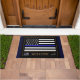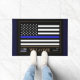 Doormat: Welcome mat with Thin Blue Line & American Flag (USA) – 施行/警察をテーマにした – 私の国を愛し、愛国者