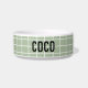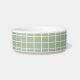 モダンな幾何学的なモノクロのグリッドパターンが特徴の、セージグリーンのかわいいペットボウル。名前をセージグリーンの色合いでカスタマイズ可能。ペットの飼い主への理想のギフト