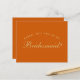 シンプルでミニマルな、しかもウェディングカラーである燃え焦げたオレンジ色のドレスを身にまとうブライズメイドへの提案メッセージ。