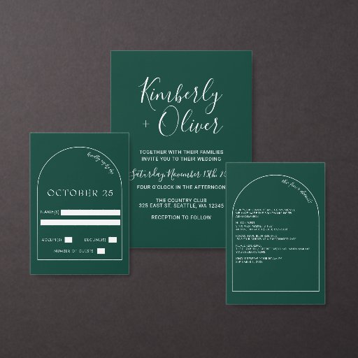 シンプルミニマルモダンリストエメラルドグリーン結婚ズカラーテーマ招待状ベリーバンド