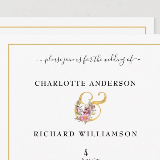 WEDDING - Simple Elegance, Gold Border, Ampersand デザイン: Deborah Nyman