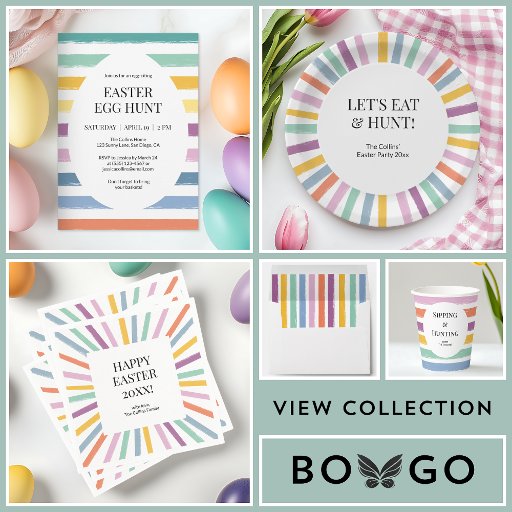 シンプルカラフルイースターエッグ狩りストライプのかわいいパーティー 招待状
