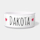 犬のシンプル名前の両側に水彩ハートが付いた陶製の可愛いドッグボウル。パーソナライズされたシンプルデザイン。ペットの名前でパーソナライズす素晴らしる、子犬、犬、猫のために。シンプルパーソナライズされたモダンドッグペットボウル