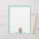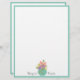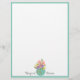 名シンプル前のパーソナライズされた花の花瓶とシックなモダン文房具。デザインはピンクと黄色の花を持つミントな緑の花瓶を備え、前後に縁どマッチを付けている。