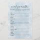 おもしろいとフェスティバルのツイストを追加あなたの冬の赤ちゃんシャワーとシンプルベビーブルースノーフレークの単語スクランブルゲーム。この可愛いゲーム魅力的は、柔らかい青い雪の上に水の色のデザインを備え、"ベビーそれは寒い外の"お祝いの居心地の良い、冬の雰囲気を完璧にキャプチャ。ベビーシンプル関連の言葉を解読し、インタラクティブなおもしろいの時間を提供するためにゲストに挑戦し、まだ楽しい、it。任意の赤ちゃんシャワーに理想的な、この単語スクランブルゲーム素晴らしは保あなたの冬のテーマのデコアを補完しながらゲストのための方法婚約した。雪の魅力と自然よくはしゃぐで、このゲームは必ずあなたの赤ちゃんシャワーでヒット!