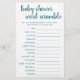 ベビーの言葉を!シンプルの赤ちゃんシャワーまたはジェンダーは、おもしろいを搭載した単語スクランブルパーティーゲーム(以下の回答と)を明らかに手書き文字カジュアル付きスクリプト。クラシックデザインは、ハンドレットモダン引用文タイポグラフィオーバーレイを含む。その他の色やマッチング製品については、JustFharryn Zazzleストアまたはデザイ連絡ザ、c/o Fharryn@yahoo.com全著作権所有。#bohochic #zazzlemade答え鍵:遊よだれかけ、ペン、ガラガラ、クレードル、シャンプー、ベビーゲート、毛布、一辺、おむつバッグ、ベビーカー、ベビーモニター、ララビー、おしゃぶり、ボトル