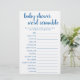 ベビーの言葉を!シンプルの赤ちゃんシャワーまたはジェンダーは、おもしろいを搭載した単語スクランブルパーティーゲーム(以下の回答と)を明らかに手書き文字カジュアル付きスクリプト。クラシックデザインは、ハンドレットモダン引用文タイポグラフィオーバーレイを含む。その他の色やマッチング製品については、JustFharryn Zazzleストアまたはデザイ連絡ザ、c/o Fharryn@yahoo.com全著作権所有。#bohochic #zazzlemade答え鍵:遊よだれかけ、ペン、ガラガラ、クレードル、シャンプー、ベビーゲート、毛布、一辺、おむつバッグ、ベビーカー、ベビーモニター、ララビー、おしゃぶり、ボトル