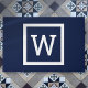 シンプルモダンネイビー青グラフィック縁どモノグラム ドアマット