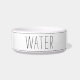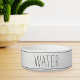 犬や猫モダン用のかわいい農家スタイルペットボウルは、アクセント付きの手書きスタイル暗黒の木炭グレーのレタリングに「水」を備えストライプのている。
