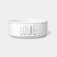 犬モダンや猫用のかわいい農家のスタイルペットボウルは、アクセント付きの木炭グレー手書きスタイルレタリングにあなたのペットの名前をストライプの特徴とする。