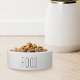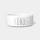 犬や猫モダン用のかわいい農家スタイルペットボウルは、手書きのスタイル炭の灰色のレタリングで「食べ物」を特徴としている。