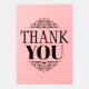 この感謝していデザインでは、太いセリフの黒い文字で「ありがとう」と言い、デザインのオーナメントを上下に深いのサンゴのテクスチャの背景に置きます。