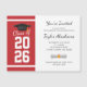 この背景に卒業式の年や名前、詳細を追加しはっきりしたてモダン赤と白、「パーソナライズ」ボタンを使用して黒いタイポグラフィ卒業パーティーの招待を受ける。