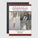 シンプルでクラシック、そしてエレガントな3枚の写真が特徴のマルーン、ホワイト、グレーの卒業発表デザインで、スクリプト「署名」テキストが卒業生の名前を強調します。